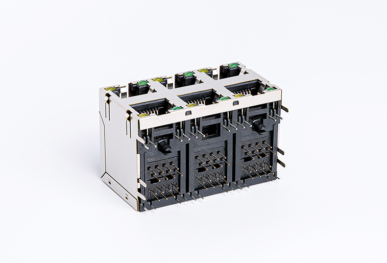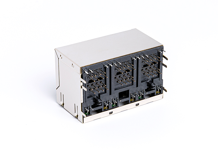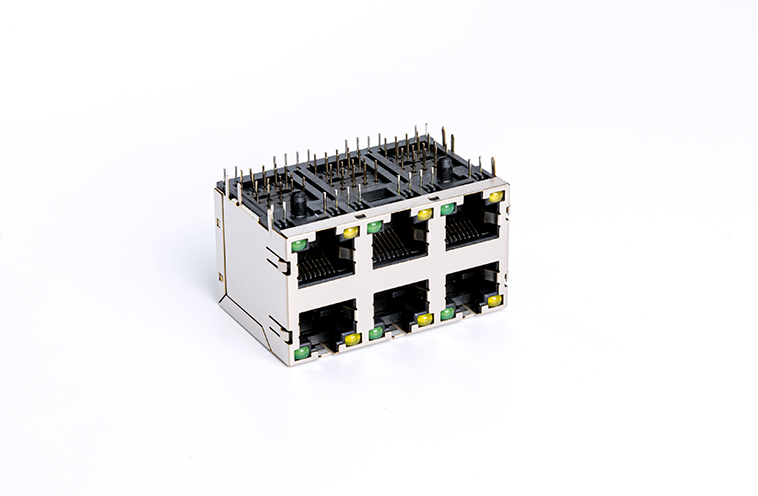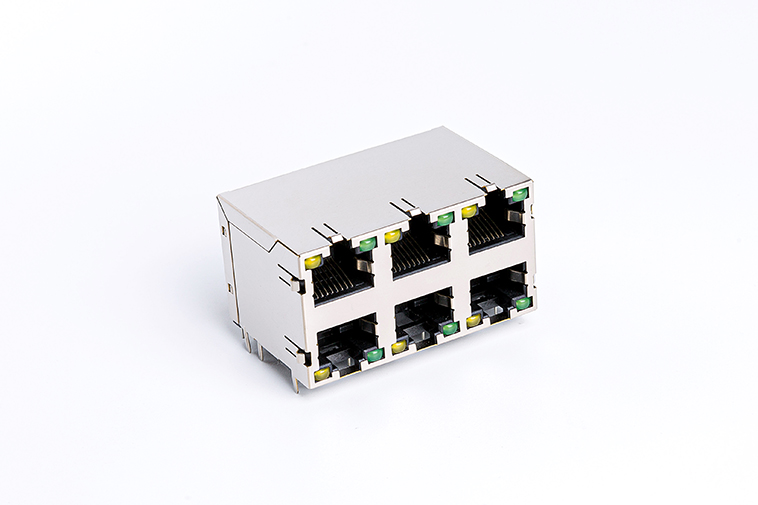 90度RJ45网络连接器 卧式8P8C 屏蔽带灯2×3网络接口