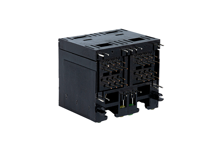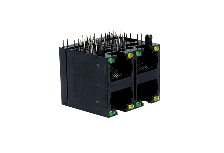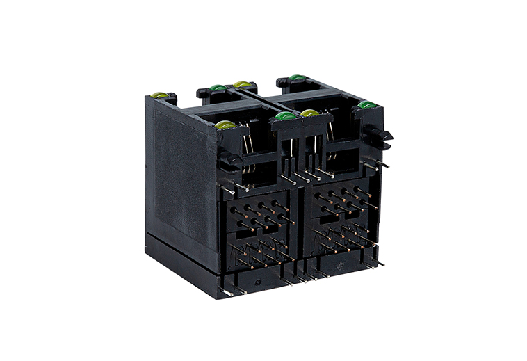 90度RJ45 双层带灯全塑2×2卧式8P8C网络接口